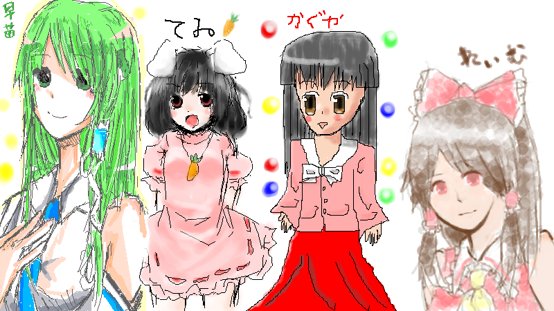 早苗(ごまちゃん)、てゐ(すずめさん)、輝夜(私)、霊夢(mineさん)。